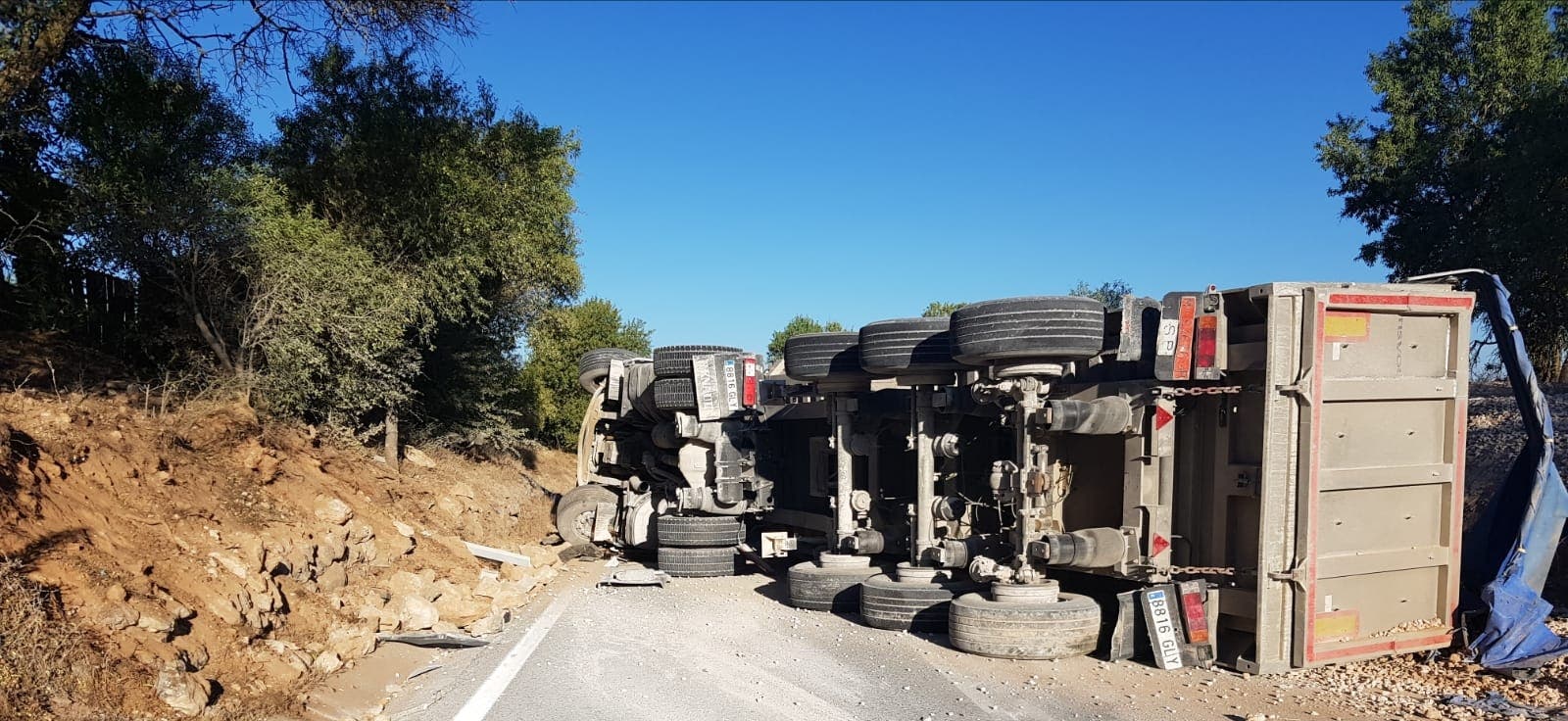 El accidente fue bastante aparatoso al quedar completamente volcado el camión en la carretera, por lo que tuvieron que intervenir los Bomberos de la Comunidad de Madrid.
