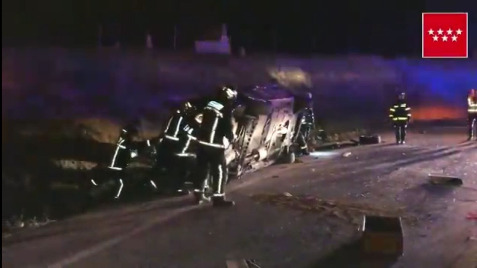 Los Bomberos de la Comunidad de Madrid liberaron anoche a un conductor atrapado tras volcar su vehículo en la M-511.
