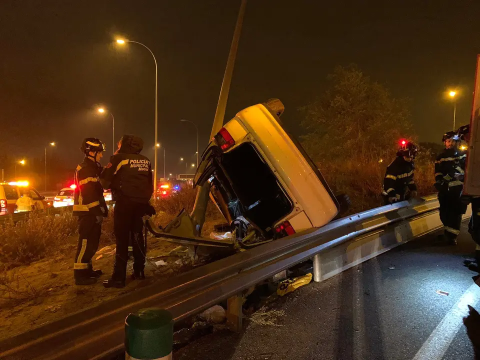 Al parecer el conductor, único ocupante, ha perdido el control de su coche, se ha salido de la vía de servicio, ha chocado contra una farola y ha quedado semivolcado.