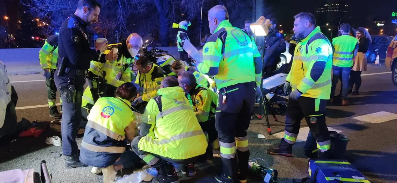 El SAMUR trasladó grave al hospital a la conductora de la moto con fracturas ortopédicas, y su acompañante fue trasladada con fractura de muñeca. La Policía Municipal se ha hecho cargo de la investigación de los dos siniestros.