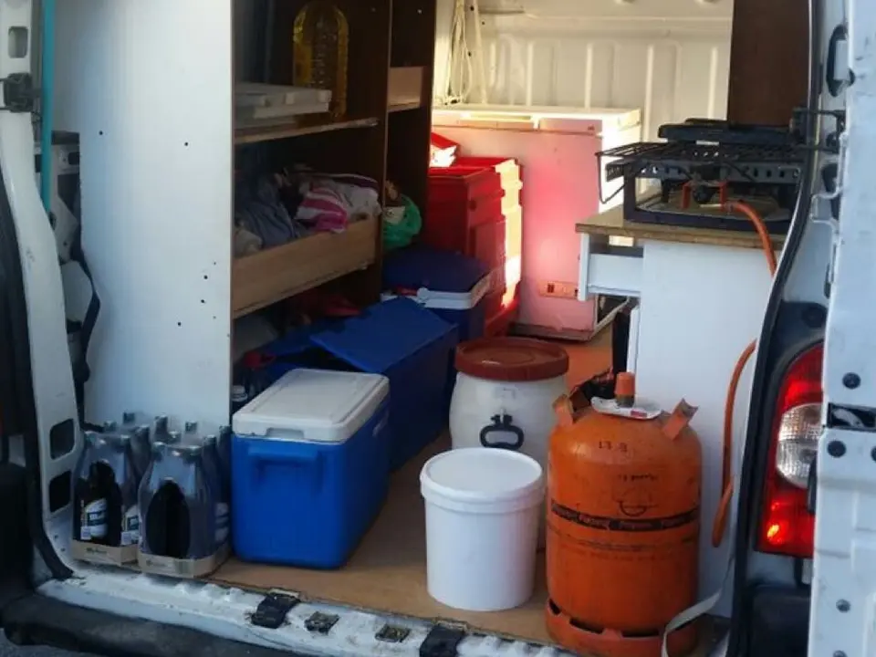 Los agentes observaron que muchos de los allí presentes consumían bebidas y comidas preparadas. Al ver que éstas provenían de una furgoneta aparcada en las inmediaciones, la Policía procedió a inspeccionar la misma, comprobando que en su interior había gran cantidad de productos, (carnes, pescados y vegetales), todos ellos almacenados crudos, sin aislar del medio y sin refrigeración, así como una cocina de gas propano instalada de forma ilegal, en la que se preparaban los alimentos para venderlos al público que allí se acercaba.