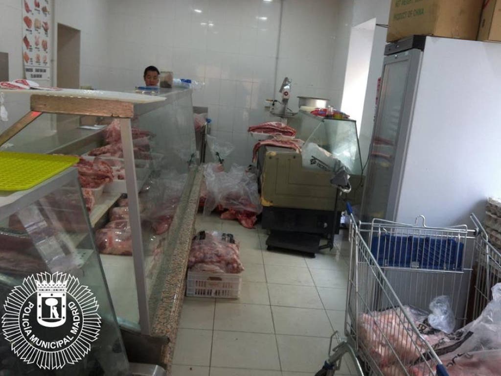 La Policía Municipal de Madrid ha realizado una inspección en una carnicería de Usera que carecía de todas las condiciones higiénicas y comercializaba productos alimenticios en un establecimiento abierto al público.