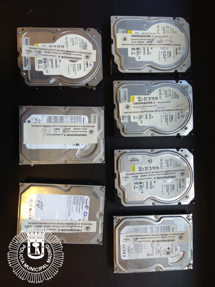 La Policía Municipal de Madrid investiga a una persona por un delito contra la propiedad intelectual tras intervenir siete discos duros en la inspección a un locutorio en el distrito de Usera.