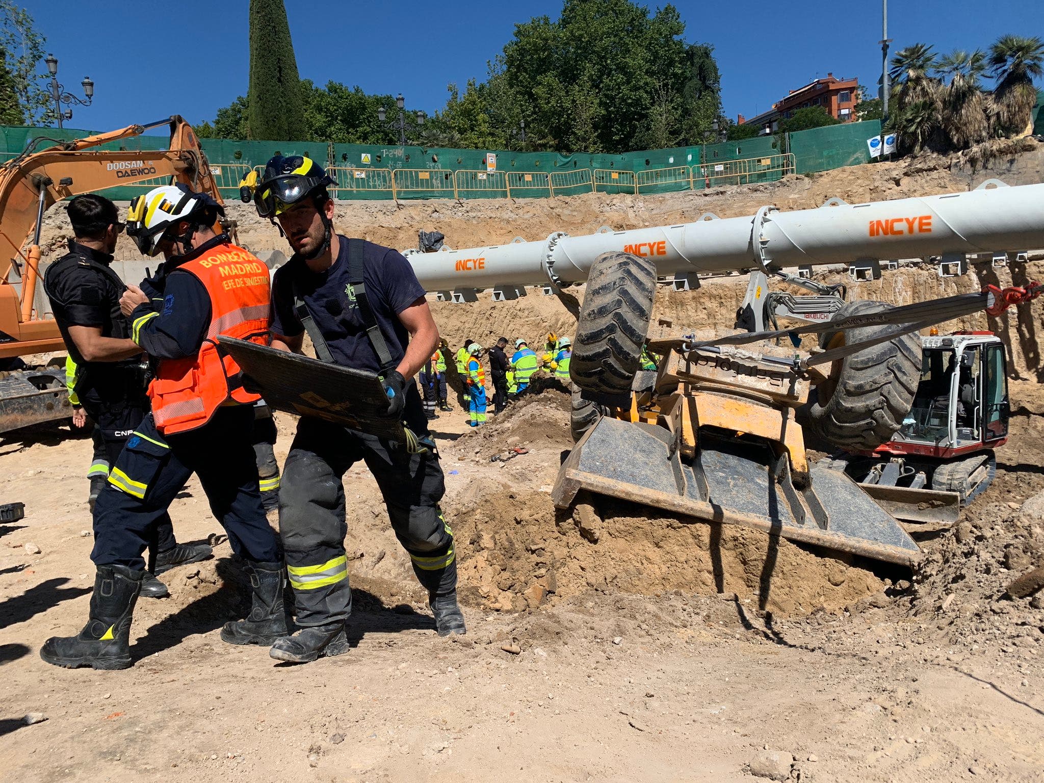 El joven murió al quedar atrapado tras volcar el dumper que conducía, cargado de arena, y con el que estaba realizando movimientos de tierra en una subestación eléctrica que está construyendo Iberdrola en el subsuelo. Los Bomberos del Ayuntamiento de Madrid rescataron al joven, elevando la maquinaria con la ayuda de una retroexcavadora de la propia obra y lograron su liberación.
