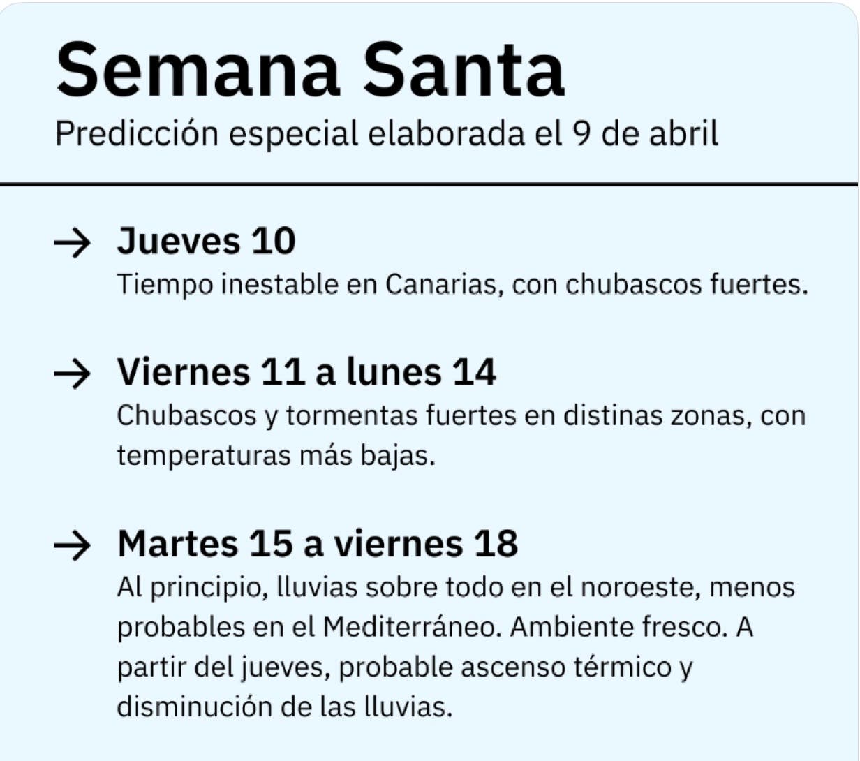 La AEMET publica el pronóstico completo del tiempo para la Semana Santa 2025 en España