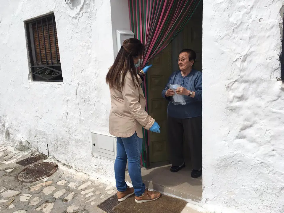 La alcaldesa de Pozuelo del Rey reparte ella misma mascarillas casa por casa