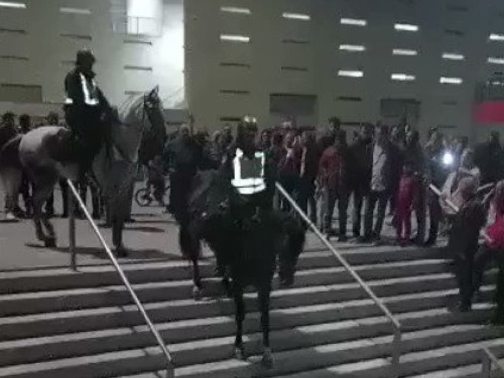 La brutal caída de un policía a caballo por las escaleras del Wanda