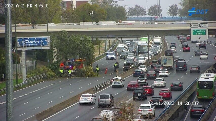 La DGT (Dirección General de Tráfico) ha informado de la caída de un árbol en la entrada a Madrid por la A-2, en el kilómetro 4 de la autovía.