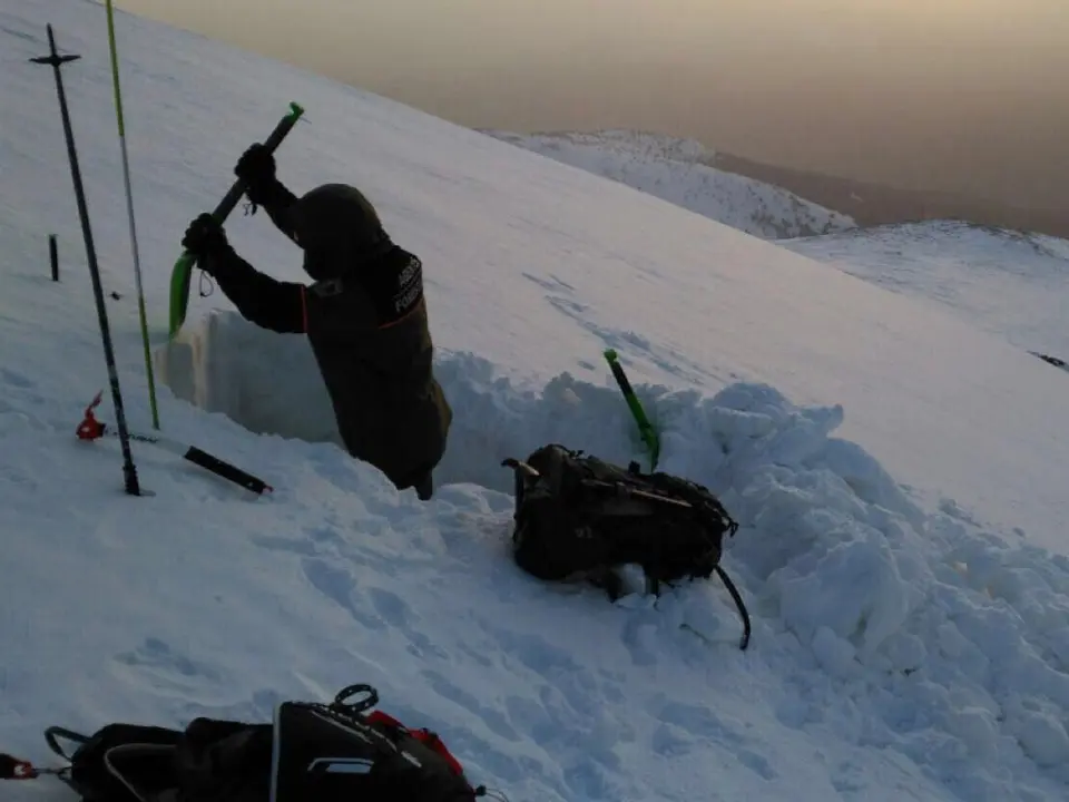El segundo trabajo consiste la observación de estratos, identificando las distintas capas, su densidad y contenido de aire en cada una, así como la dureza, humedad y grado térmico. Estos datos informan sobre cómo se comportan entre sí y avisan de posibles incidentes. Posteriormente, se realizan test de estabilidad, aislando bloques helados y sometiéndolos a distintas presiones para comprobar cómo se comportarían ante el paso de esquiadores. Finalmente, los informes se complementan con las medidas recogidas en otros puntos de la sierra, que ayudan a valorar el estado del manto nivoso.