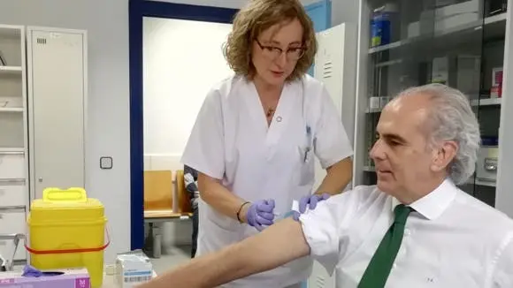 El consejero de Sanidad de la Comunidad de Madrid, Enrique Ruiz Escudero, ha acudido a una consulta en su centro de referencia, el Centro de Salud Pozuelo Estación (Pozuelo de Alarcón), donde se ha vacunado frente al virus gripal y ha animado a la vacunación de los ciudadanos de los grupos de riesgo indicados.