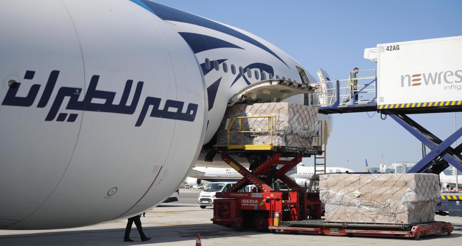 El avión que ha llegado hoy al Aeropuerto de Barajas, un Boeing 777, cargado con 30 toneladas, viene procedente de Shanghai (China), como los seis anteriores del último mes, aunque en este caso ha hecho escalada en El Cairo (Egipto). Se espera que a lo largo del fin de semana y principios de la que viene lleguen otros tres vuelos, también de China, con los que se alcanzarán los 7 primeros millones de mascarillas. En las últimas cinco semanas, el Gobierno madrileño ha sumado siete aviones, incluyendo el de hoy, y la próxima semana se alcanzarán un total de 10. Se han recibido hasta 469 toneladas en suministros por vía aérea para su uso por profesionales sanitarios en su trabajo diario con pacientes con coronavirus. Han venido con 20 millones de unidades entre mascarillas, trajes y gafas de protección, batas sanitarias o calzas, junto a otro tipo de material.
