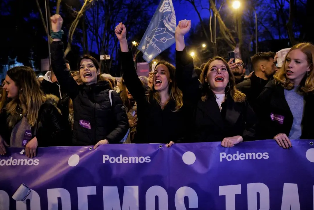 A la primera acudieron varias ministras socialistas y también, aunque por separado, la ministra de Igualdad, Irene Montero. Y en ella se colaron con una polémica pancarta las jóvenes de Nuevas Generaciones del PP. En la segunda se pedíala dimisión de la ministra de Igualdad, con gritos a favor de abolir la prostitución y en contra de la ley trans.
