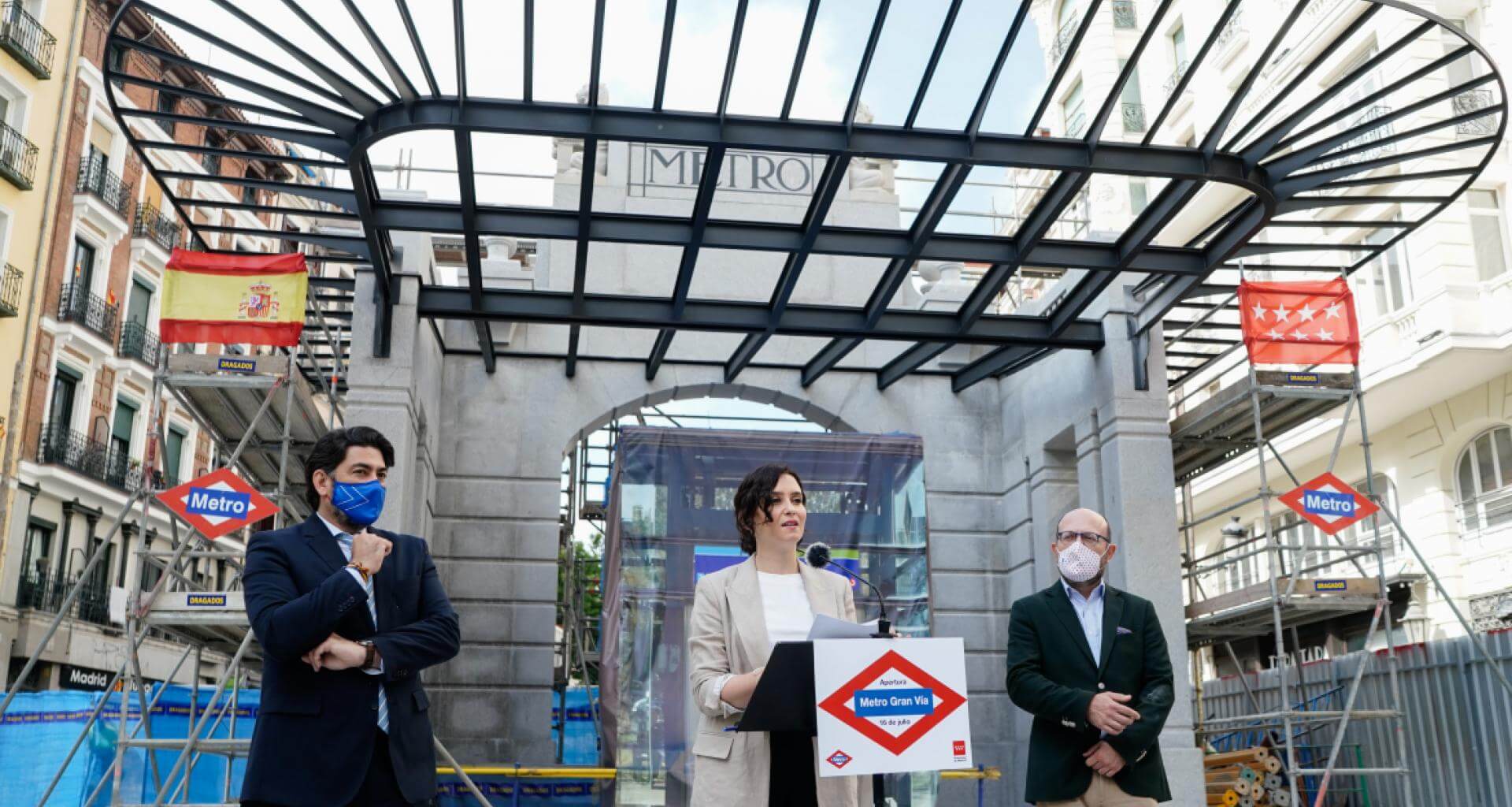 La presidenta en funciones de la Comunidad de Madrid, Isabel Díaz Ayuso, ha anunciado hoy que la estación de Metro de Gran Vía abrirá el próximo 16 de julio. «Más de 1.000 días de espera pueden parecer muchos, pero cuando los ciudadanos vean el resultado y a pleno rendimiento sabrán que ha merecido la pena», ha indicado la jefa del Gobierno regional, que ha comprobado los trabajos que se están realizando en este punto.