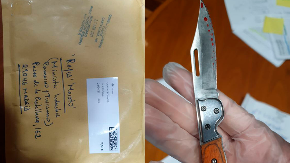 La ministra de Industria y Turismo, y futura vicepresidenta de Ángel Gabilondo en Madrid si consigue gobernar, Reyes Maroto, ha recibido este lunes en la sede del ministerio, y a través de Correos, un sobre con una navaja «aparentemente ensangrentada».