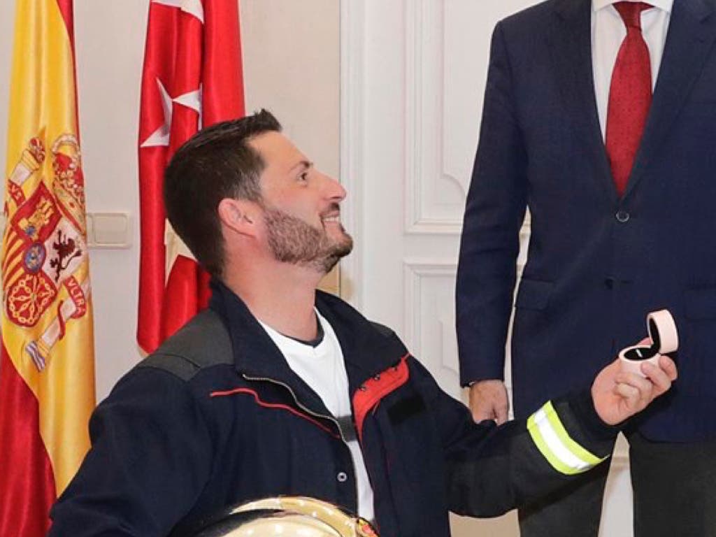 Uno de los 113 nuevos Bomberos de la Comunidad de Madrid pidió matrimonio a su novia en el acto de entrega de diplomas como profesionales de nuevo ingreso celebrado este viernes en la Real Casa de Correos y ante la presencia del presidente de la Comunidad de Madrid, Ángel Garrido.