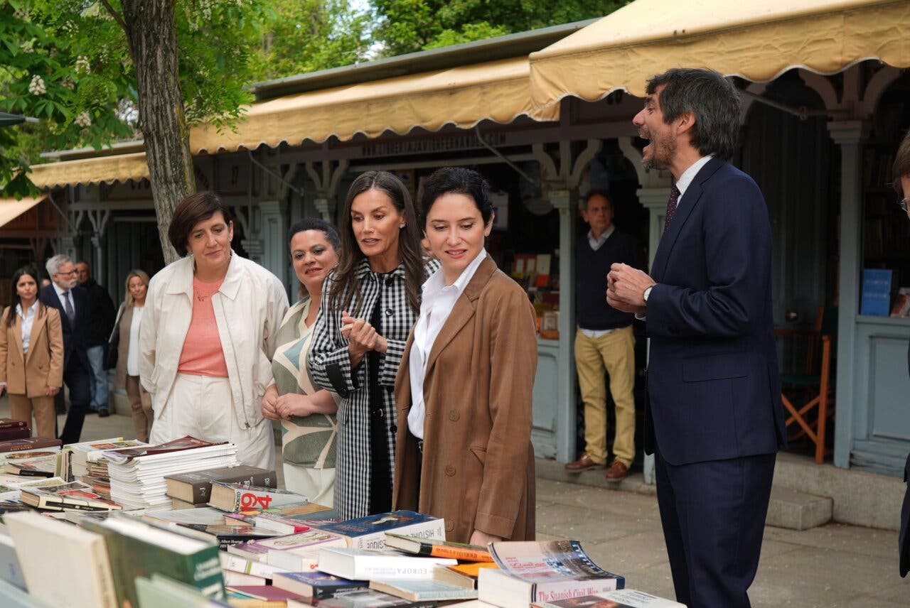 La presidenta de la Comunidad de Madrid, Isabel Díaz Ayuso, ha acompañado este viernes a la Reina Doña Letizia en su visita a la Cuesta de Moyano con motivo del centenario de esta histórica feria de libros.