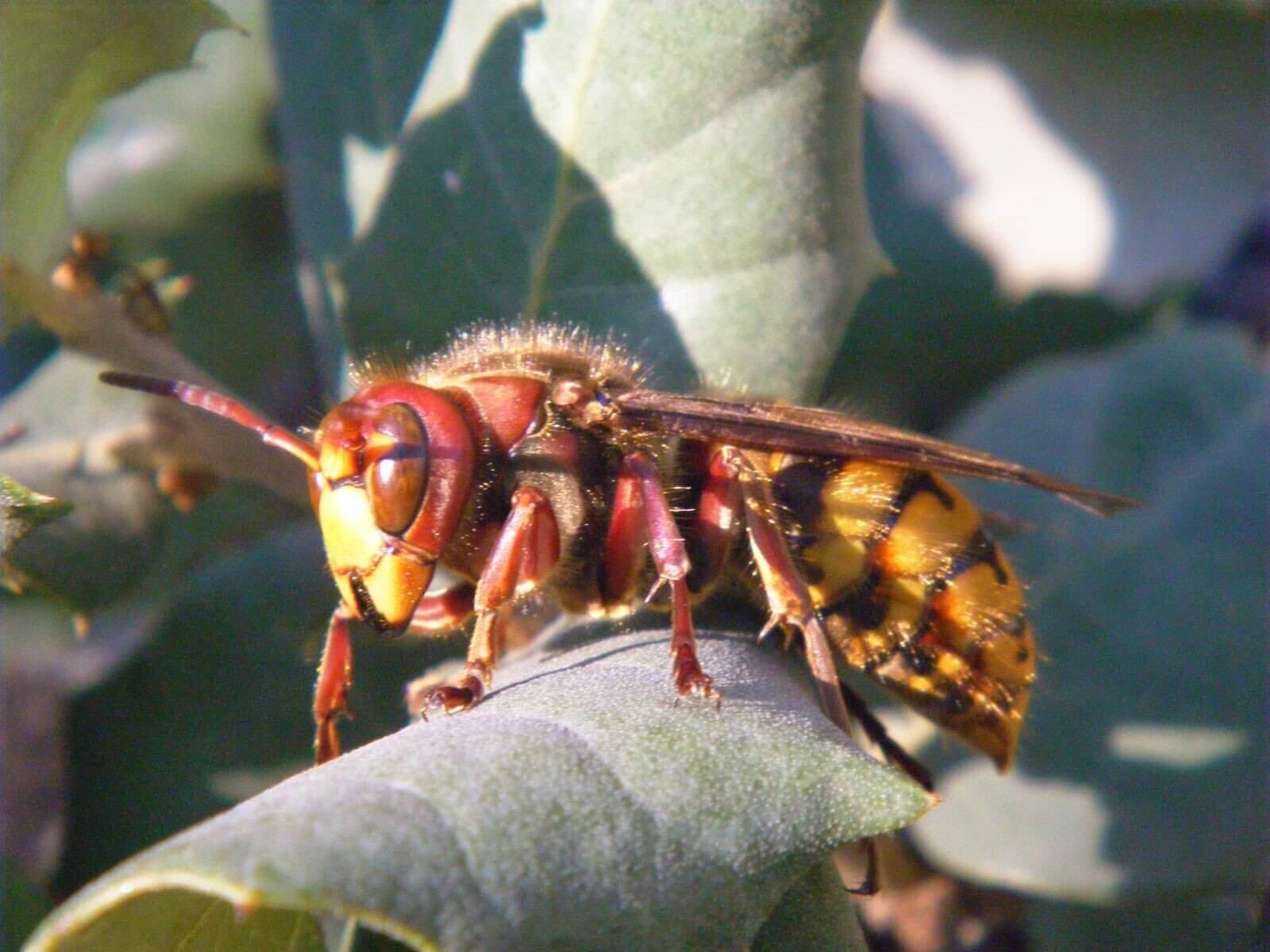 2. El avispón europeo (Vespa crabro). Sí hay en Madrid. Mide unos 3,5 centímetros. Tiene todas oscuro y abdomen mucho más amarillo que el avispón asiático. Las patas, normalmente, son negras.