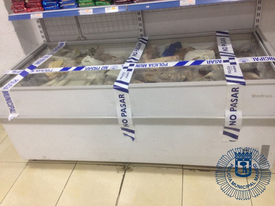 Agentes de la Policía Municipal de Madrid intervinieron ayer en un local del distrito de Usera un total de 660 kilos de alimentos conservados de manera deficiente.