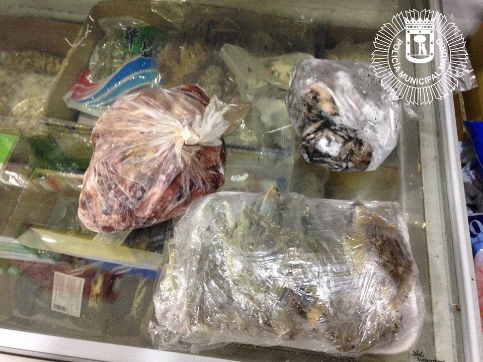 Así, los agentes continuaron con la inspección del recinto. Encontraron unos arcones congeladores, en los que se guardaban congelados varios productos, como pescado, carne, marisco y crustáceos. Estos alimentos no contaban en su mayoría con ningún tipo de etiquetado y los que lo hacían, mostraban una fecha de caducidad sobrepasada hasta en dos años.