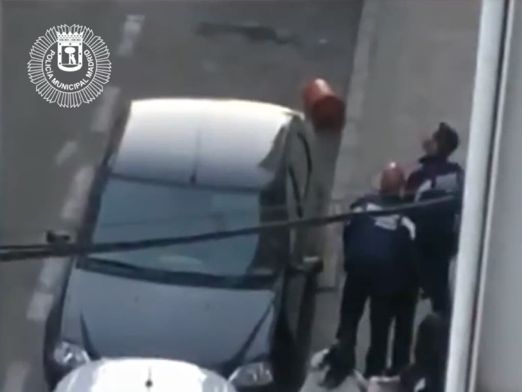 Dos personas lanzaron desde una azotea una bombona de butano a agentes de la Policía Municipal de Madrid mientras les insultaban y amenazaban.