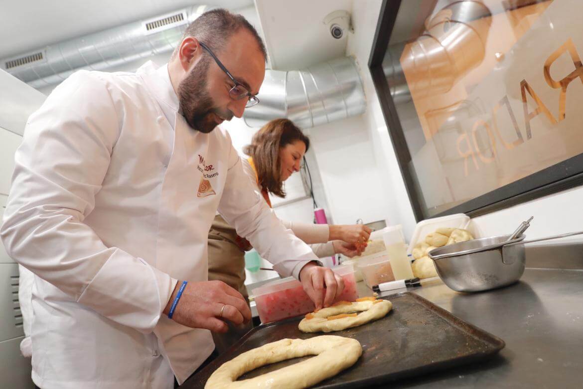 Junto con el presidente de ASEMPAS, Juan Antonio Martín, el consejero ha participado en las diferentes fases de elaboración de los tradicionales roscones de reyes en la pastelería Manacor, establecimiento que pertenece a la antigua marca Cala Millor, nacida de una tradición pastelera que se remonta al año 1753.