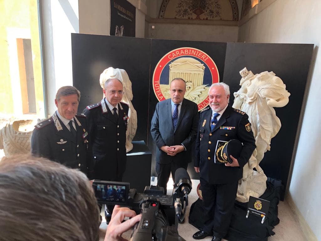 La Policía Nacional, en colaboración con el Comando de Tutela del Patrimonio Cultural del Cuerpo de Carabinieri Roma (Italia), han recuperado tres piezas artístico-históricas sustraídas en parques públicos y privados de Roma, una de ellas valorada en 200.000 euros.