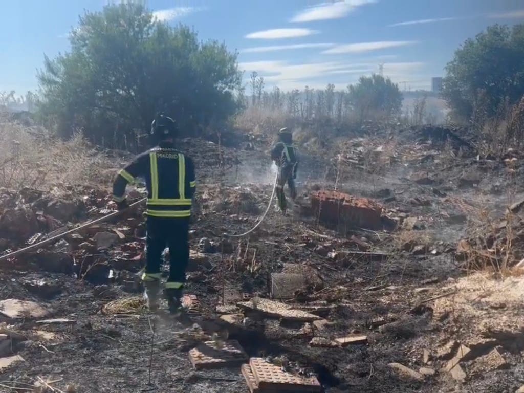 Los Bomberos del Ayuntamiento de Madrid han trabajado desde las 15:00 horas de este martes en la extinción de un importante incendio de pastos en la Cañada Real Galiana.