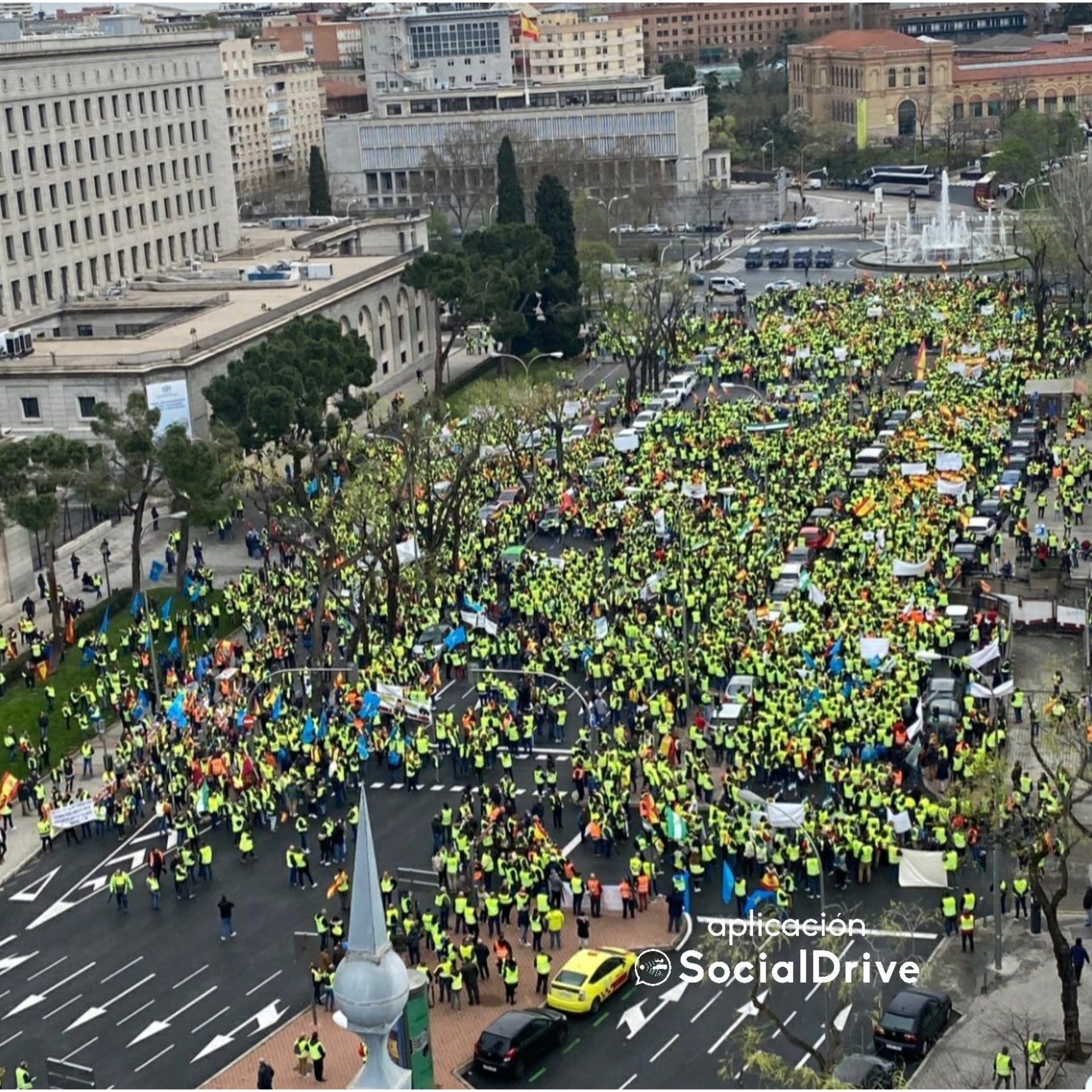 Hoy ha pedido a la ministra «que pida perdón a las miles de familias a las que ha insultado» ella y otros miembros del Gobierno «criminalizando a un sector que sólo quiere trabajar». A la marcha a pie, en la que participan miles de personas, se han unido camioneros de varias provincias españolas. Los manifestantes han conseguido cortar el Paseo de la Castellana. Los transportistas pretenden seguir adelante con los paros hasta que se atiendan sus reivindicaciones.