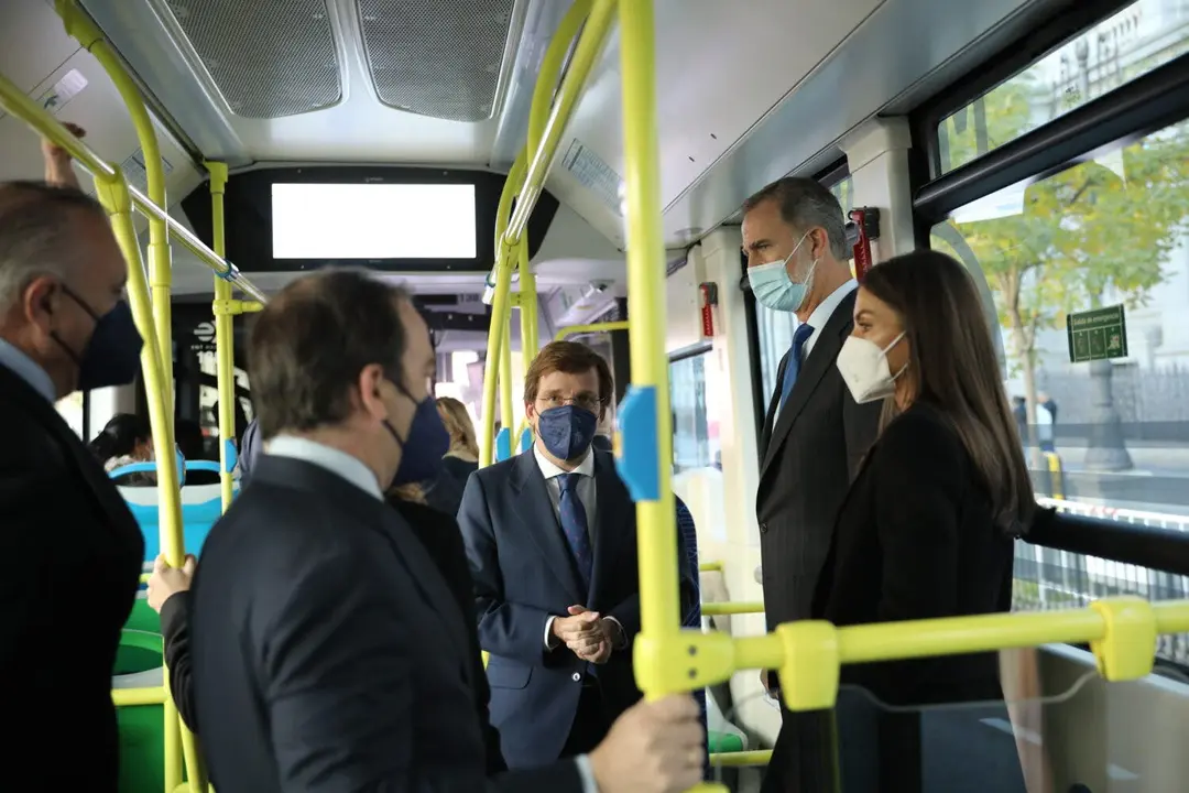 La Empresa Municipal de Transportes (EMT) conmemora desde este lunes su 75 aniversario con varios actos entre los que destaca el recorrido que los reyes han realizado hoy junto con el alcalde de Madrid, José Luis Martínez-Almeida, y el delegado de Medio Ambiente y Movilidad y presidente de la EMT, Borja Carabante, desde la calle de Alcalá en un autobús municipal de la línea 001, 100% eléctrica y completamente gratuita para los usuarios, que recorre la ciudad desde la estación de Atocha hasta Moncloa.
