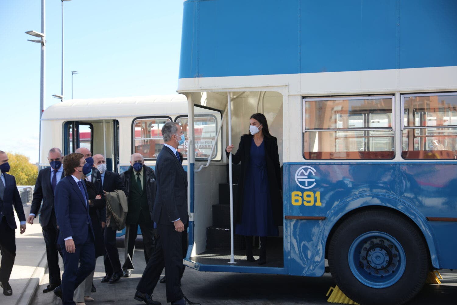 Juntos han visitado el interior del centro de operaciones hasta llegar a los talleres donde se trabaja la mecánica, electricidad, chapa y pintura de los autobuses madrileños. Don Felipe y doña Letizia han podido conocer algunos de los modelos más antiguos de la flota de la EMT, habitualmente conservados en el Museo de la empresa municipal como el mítico Leyland Titán de dos pisos (1957), el Pegaso 6035 (1971), el microbús Sava (1973), el Pegaso 6038 (1980) o el primer Mercedes de piso bajo (1995). Junto a estos vehículos históricos, una representación de la flota más moderna de la EMT y una exposición fotográfica han ayudado a recrear y contextualizar la vida de cada uno de esos modelos mientras prestaron servicio en la ciudad de Madrid.