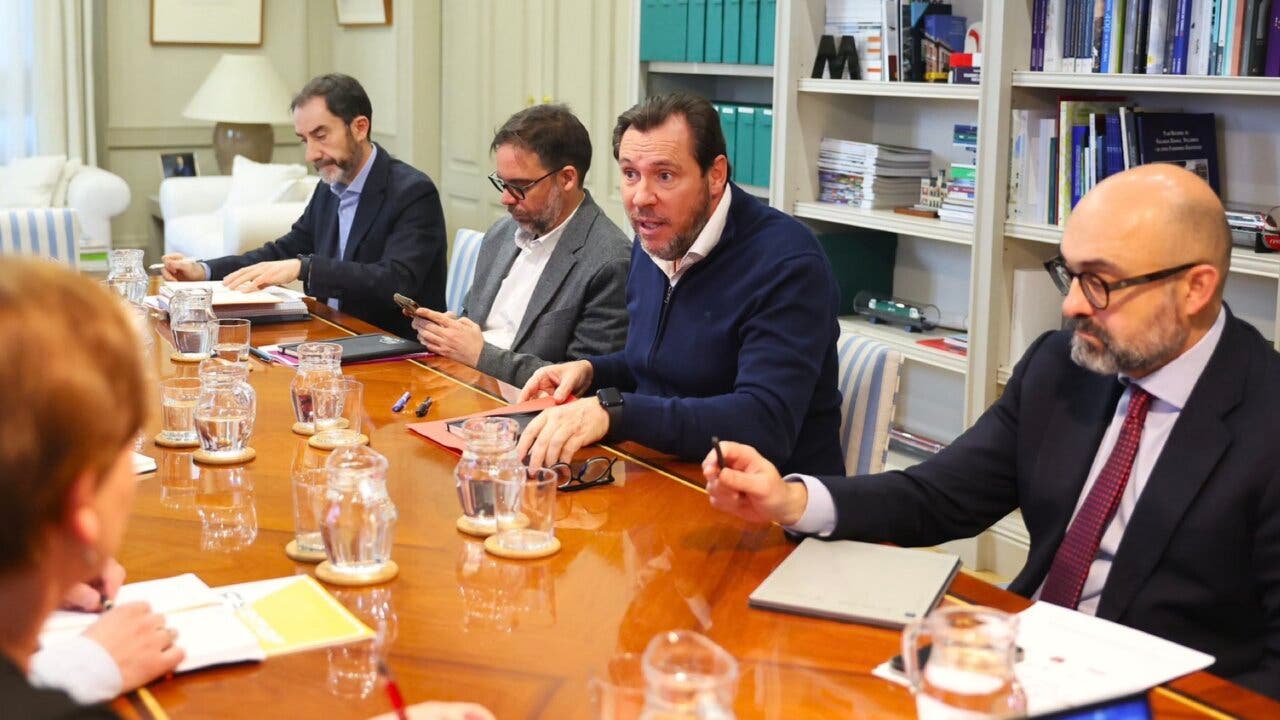 El ministro Óscar Puente ha señalado en la red social X: «Primera reunión con SEMAF, CCOO y UGT en relación con la situación del sector ferroviario y la búsqueda de soluciones conjuntas de cara al futuro».