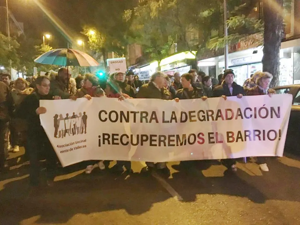 Los vecinos de Vallecas protestan contra la delincuencia en el barrio