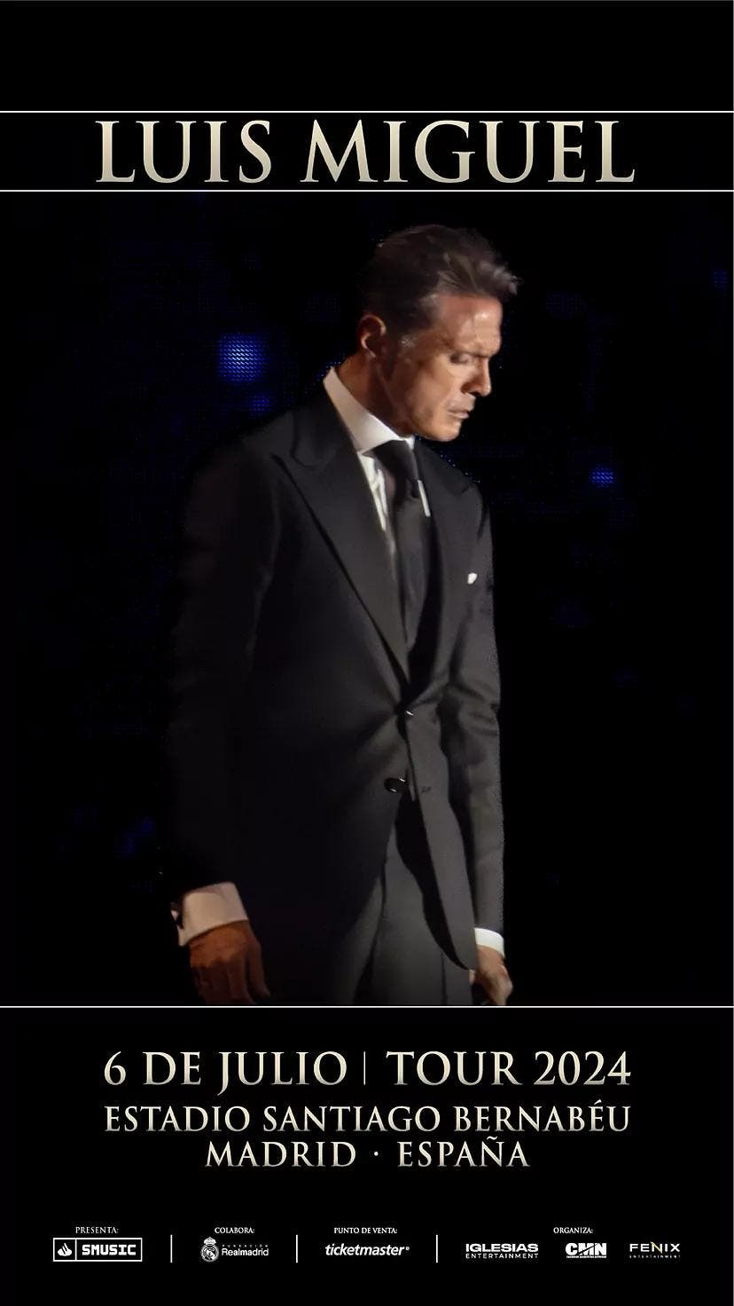 Luis Miguel ha anunciado que dará un concierto el próximo 6 de julio de 2024 en Madrid, en el recién reformado estadio Santiago Bernabéu, después de seis años sin actuar en España.