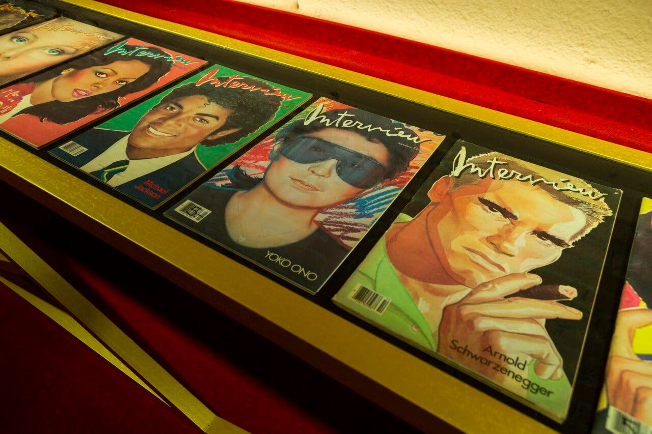 Entre ellas se encuentran sus primeras invitaciones plegadas o mailers que enviaba al galerista Leo Castelli o carteles publicitarios como el de Chanel Nº 5. También retratos de celebridades como Marilyn Monroe, o los diseños de las portadas de grupos musicales legendarios como The Rolling Stones o The Velvet Underground.