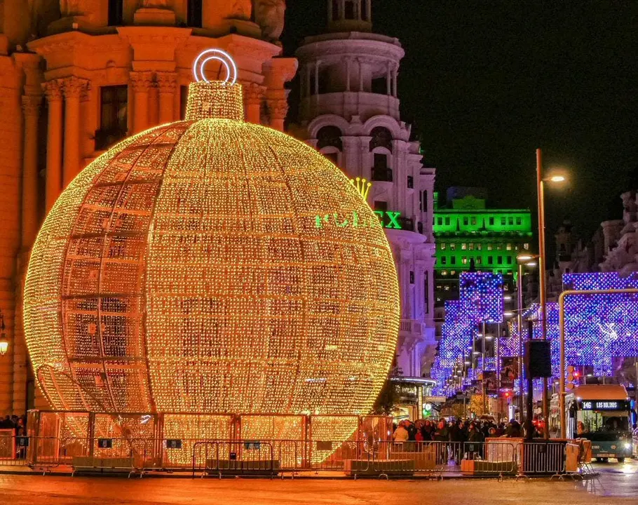 Madrid cambiará de ubicación la gran bola de Navidad de Gran Vía: este año se situará en Plaza de España