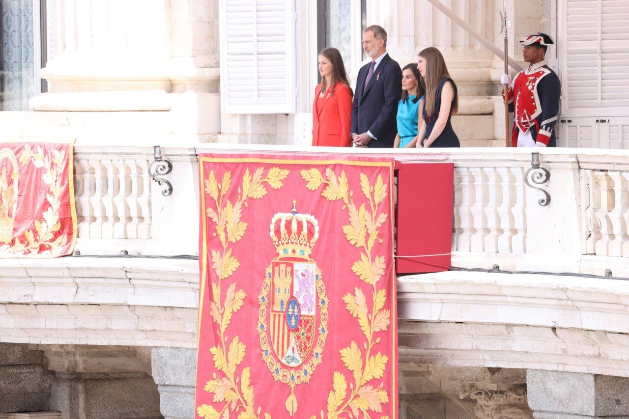 A su llegada a la Plaza de la Armería del Palacio Real de Madrid, Sus Majestades y Sus Altezas Reales han sido recibidos por el jefe de Estado Mayor de la Defensa, Teodoro Esteban López Calderón, quien ha dado novedades de la formación al Rey. Posteriormente, han entregado las condecoraciones de la Orden del Mérito Civil.