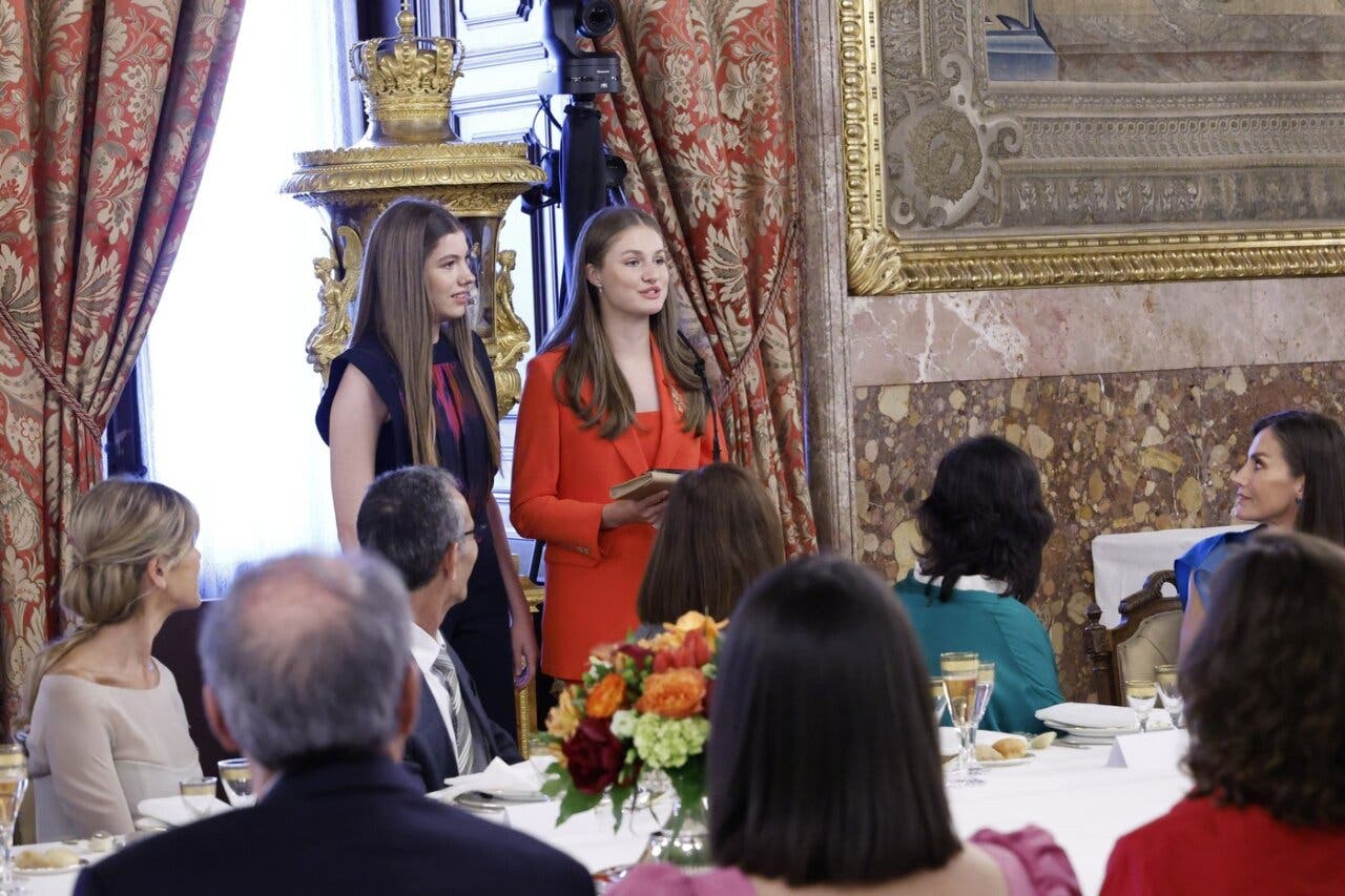 Después han ofrecido un almuerzo a una representación de los Poderes del Estado y de la sociedad; y por la tarde la Princesa Leonor y la Infanta Sofía mantendrán un encuentro con jóvenes participantes en las ediciones del concurso ¿Qué es un Rey para ti?, organizado por la Fundación Institucional Española (FIES).