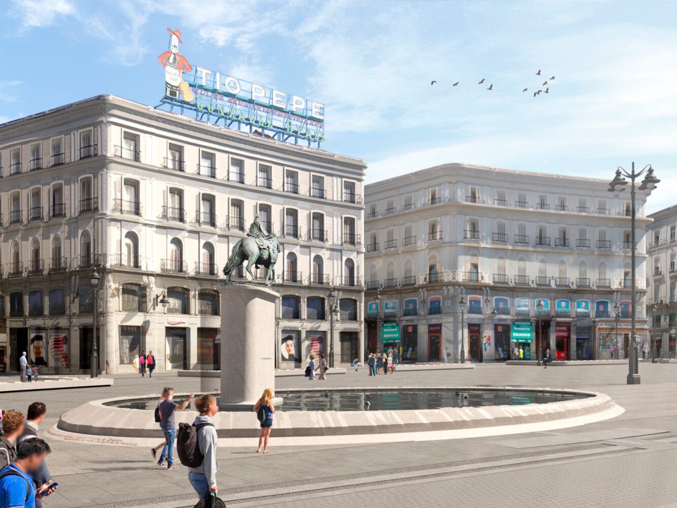 La reforma de la Puerta del Sol, que recupera el proyecto ganador de un concurso en 2014 del Colegio de Arquitectos, fue aprobada en Junta de Gobierno el pasado 24 de febrero, con una inversión de 10,7 millones de euros y una duración prevista de doce meses.