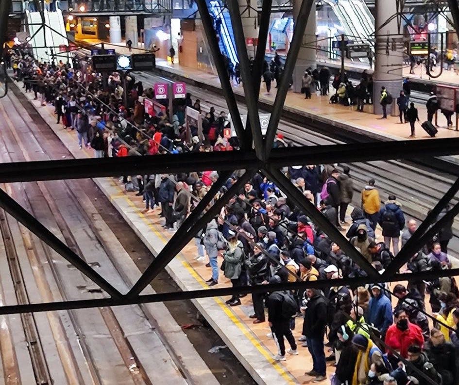 Cercanías Madrid volvió a registrar ayer otra mañana de caos con cinco líneas afectadas, viajeros atrapados a oscuras durante una hora y media en el túnel de Recoletos, andenes y trenes llenos y largas esperas para llegar al trabajo o a la universidad, una imagen que se volvió a repetir y que es constante en toda la red dependiente del Ministerio de Transportes del Gobierno de España.