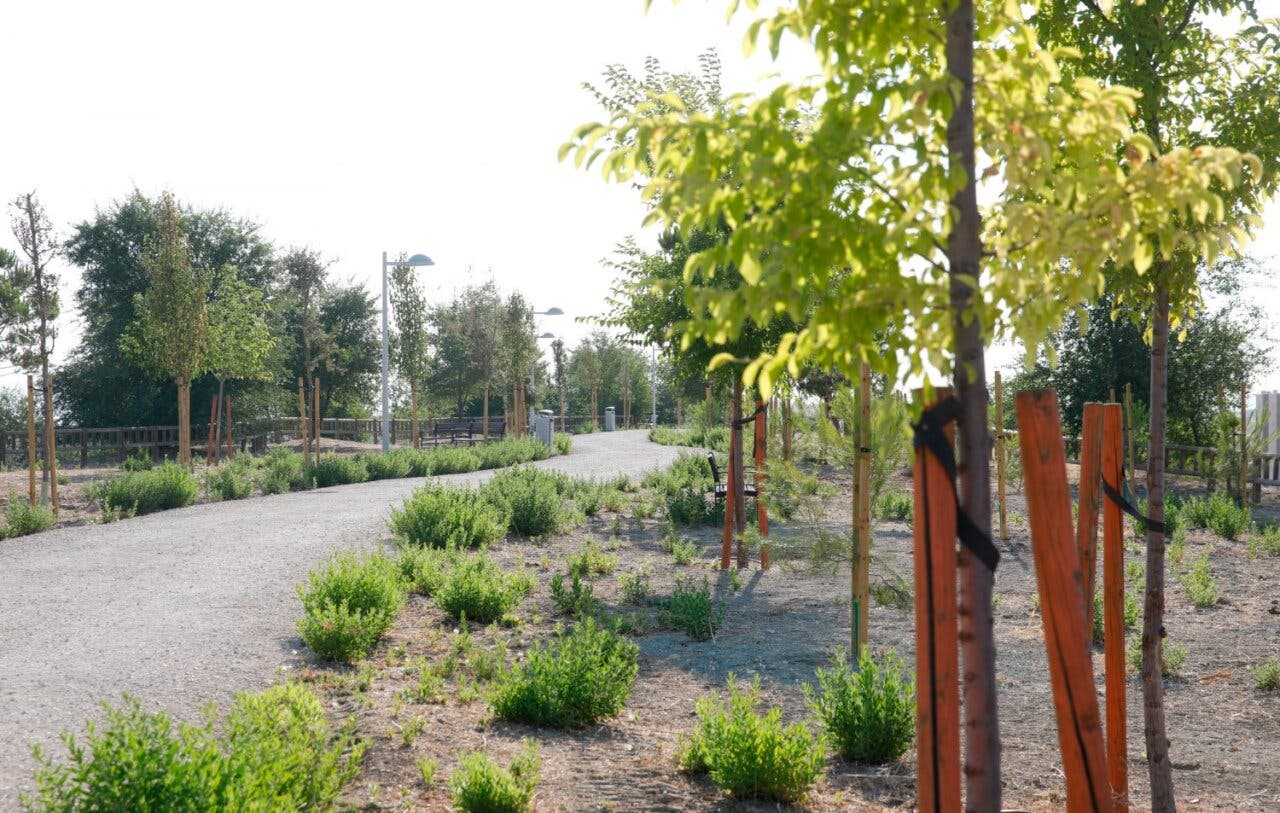 La selección de especies vegetales se ha realizado considerando su adaptación al clima de Madrid y su contribución a la biodiversidad. Se han plantado 304 nuevos árboles y 2.188 arbustos, creando un paisaje que mejora el confort climático y atenúa el efecto isla de calor, añaden las mismas fuentes. En algunas zonas se han aplicado acolchados de corteza de pino para reducir la evaporación del agua y mantener la humedad del suelo.