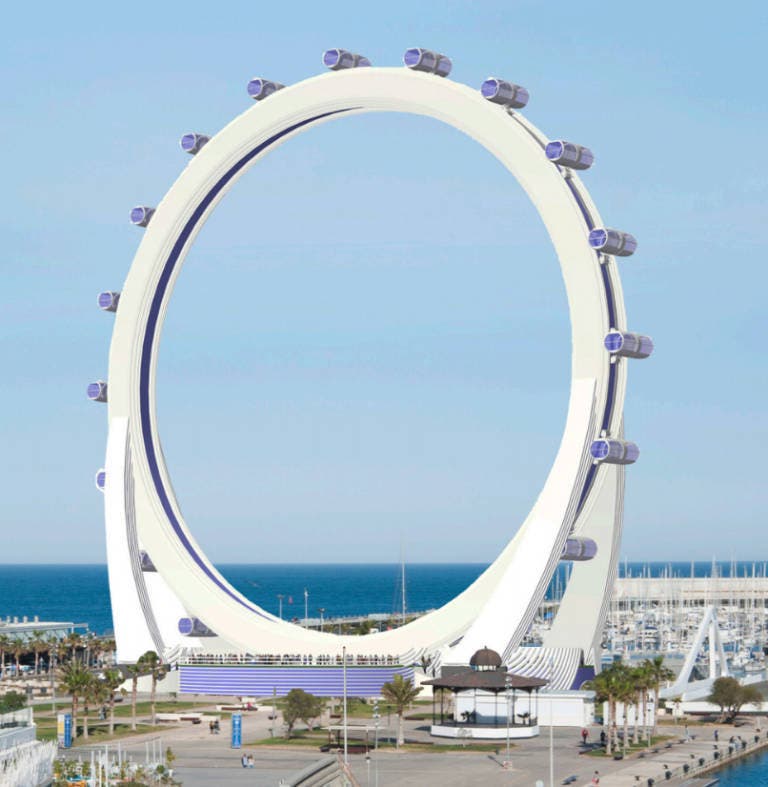 Los planes de los promotores es que la noria gigante alcance los 120 metros de altura y cuente con unas 25 cabinas que girarán sobre el aro, que permanecerá inmóvil, ya que no tendrá ni ejes ni radios.