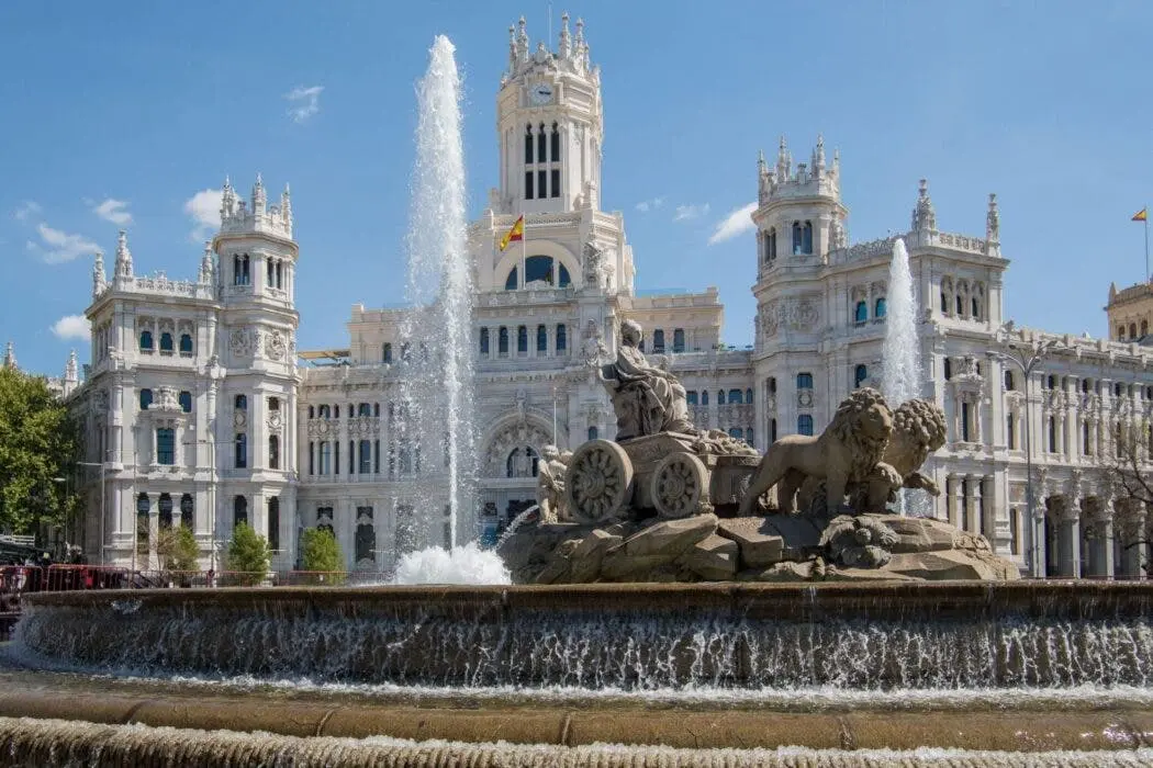 La Fuente de Cibeles, diseñada por Ventura Rodríguez y finalizada en 1781, es uno de los iconos más reconocidos de Madrid. Representa a la diosa Cibeles, madre Tierra en la mitología clásica, acompañada por dos leones, Hipómenes y Atalanta.