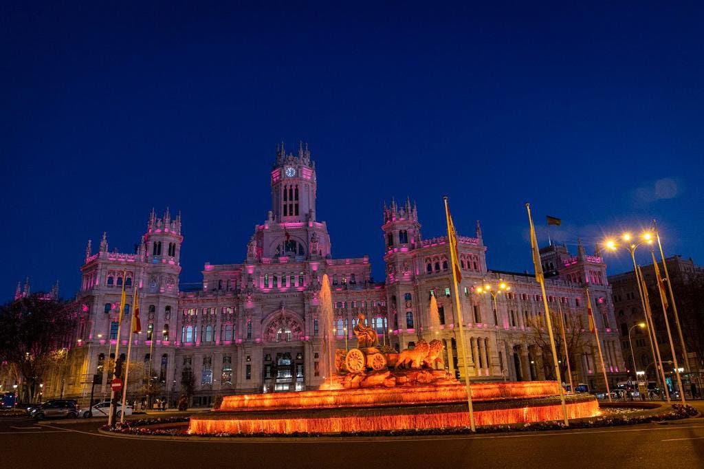 Por su parte, el Ayuntamiento de Madrid ha iluminado este domingo y también lo hará este lunes el Palacio y la Fuente de Cibeles con el color del escudo de armas.