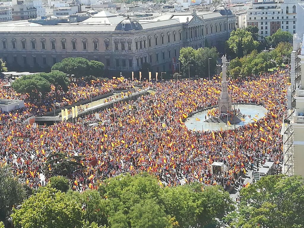 La fundación explica que la manifestación tendrá lugar a las 12 horas y recuerda que en la concentración del pasado 7 de octubre, también en la Plaza de Colón, acudieron decenas de miles de personas, ataviadas con banderas, camisetas y gorras, entre otros artículos, con los colores de la bandera de España.