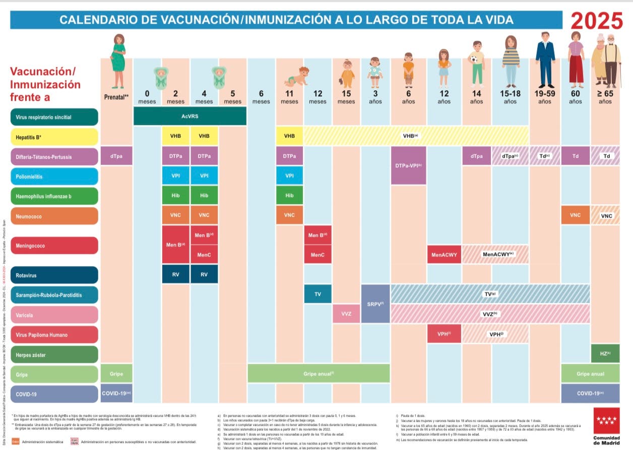 Por otra parte, la Consejería de Sanidad ya ha publicado el Calendario de vacunación e inmunización para toda la vida, año 2025 que contempla la protección contra 18 tipos de bacterias y virus, desde el periodo prenatal hasta más allá de los 60 años.