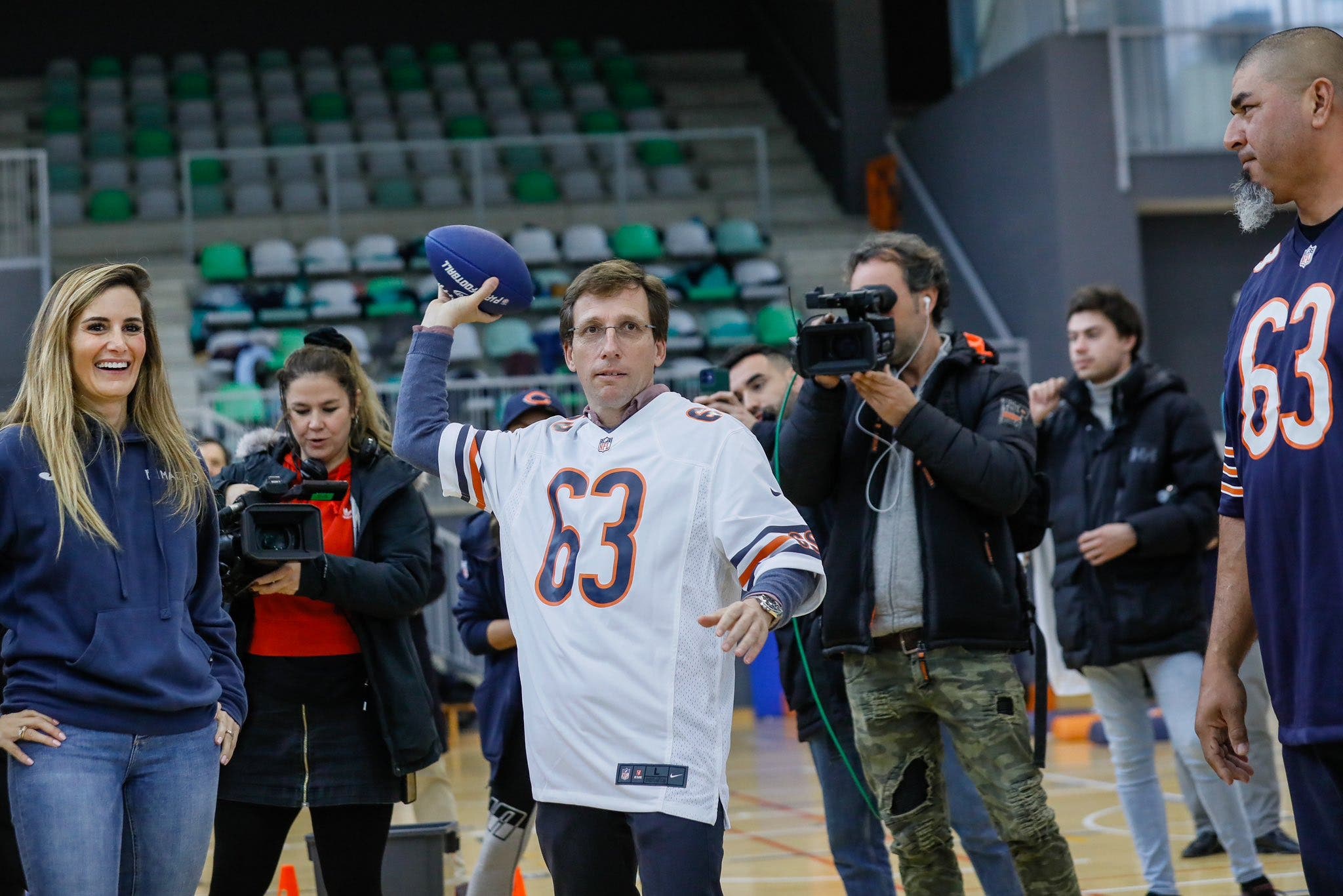 Alrededor de 150 alumnos del Colegio Santa María de Yermo de Chamberí, de entre 7 y 10 años, han podido disfrutar de un entrenamiento centrado en ejercicios de fútbol americano inclusivos y accesibles, en el que se ha hecho hincapié en la importancia de una alimentación saludable y una hidratación adecuada, junto a la actividad física. El año pasado los Chicago Bears visitaron Madrid por primera vez y celebraron un entrenamiento similar en el Campo Municipal de Rugby Las Leonas.