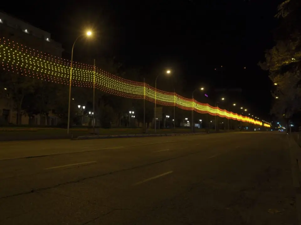 La iluminación navideña incorpora además este año los colores de la bandera de España en el eje Prado-Recoletos (entre Colón y Neptuno), en los puentes de Juan Bravo y de Raimundo Fernández Villaverde y en los aledaños del Centro Cultural Fernán Gómez. Se trata de un homenaje a un país que lo está pasando mal en una situación complicada.