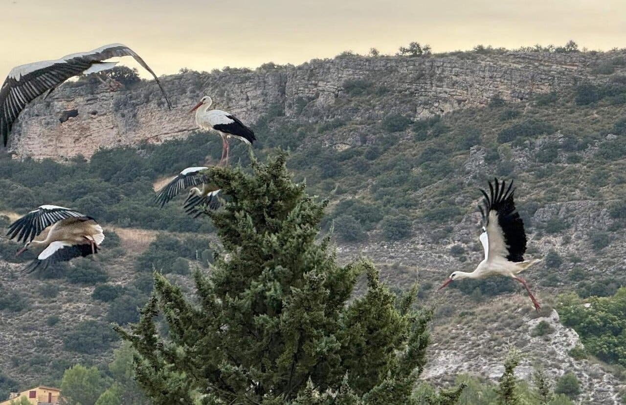 Más de 500 cigüeñas sorprenden a Villar del Olmo en plena ruta hacia el Estrecho de Gibraltar