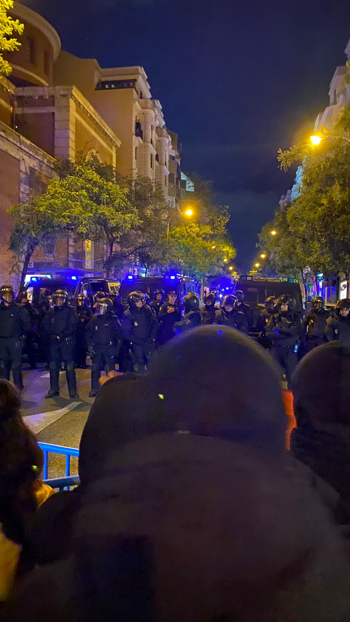 Después volvieron a Ferraz donde se produjeron disturbios por parte de algunos radicales que se saltaron el perímetro de seguridad y lanzaron objetos contra la Policía, que tuvo que cargar. Sobre las 23:30 las calles quedaron despejadas, aunque con importantes destrozos en el mobiliario urbano y restos de la batalla campal en la calle.