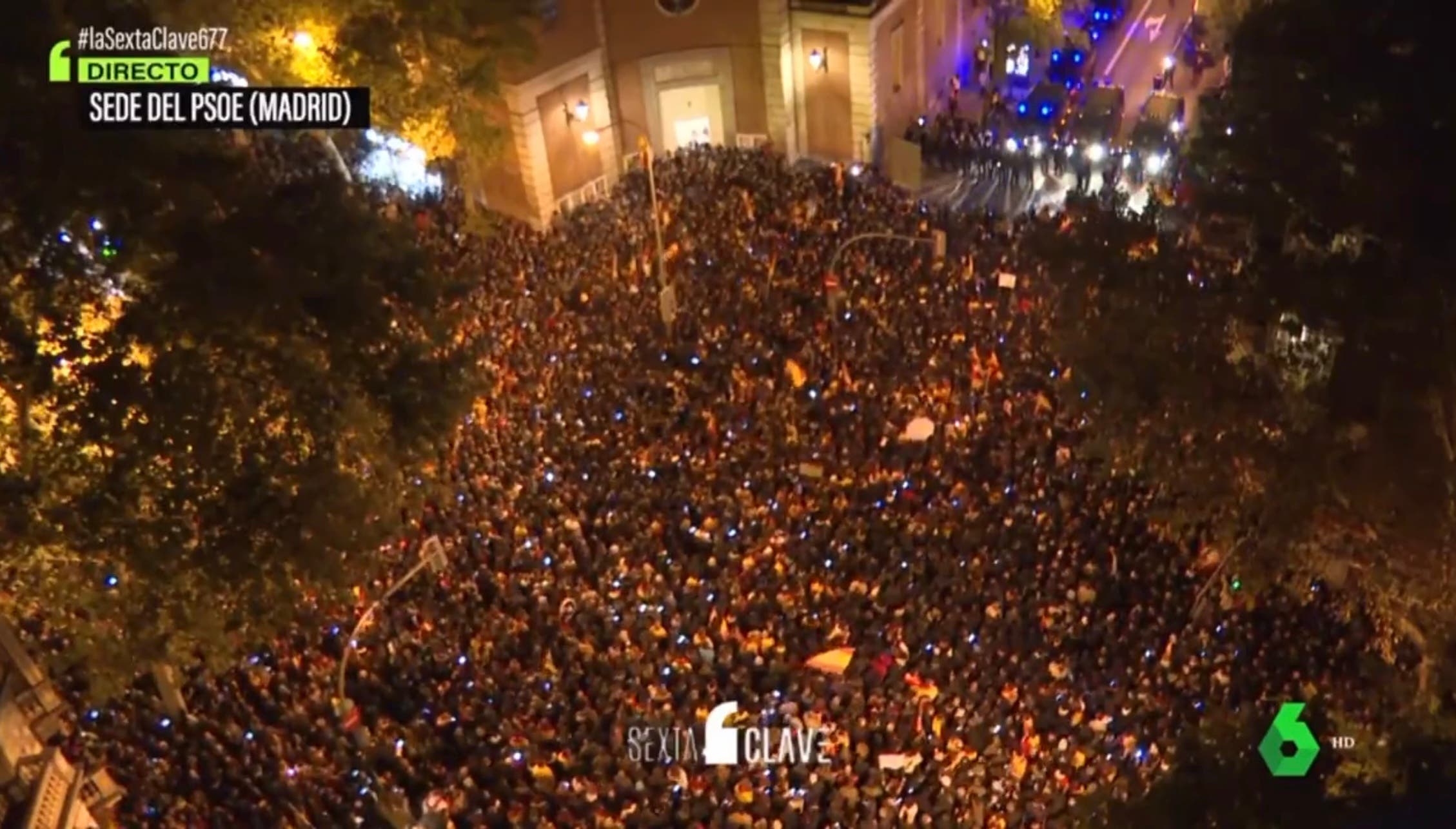 Desde las 8 de la tarde, miles de personas se congregaron en torno a la sede del PSOE en Ferraz, en una protesta convocada a través de las redes sociales, y después un grupo numeroso se dirigió hacia la Gran Vía, cortando la calle, para llegar al Congreso de los Diputados, donde protagonizaron una sentada, a pesar del fuerte blindaje policial.